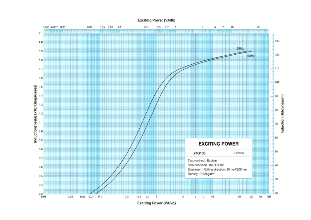 | P17/50 σημαίνει απώλεια πυρήνα δείγματος ανά kg με μέγιστη μαγνητική επαγωγή 1,7T και συχνότητα 50HZ | |||||||